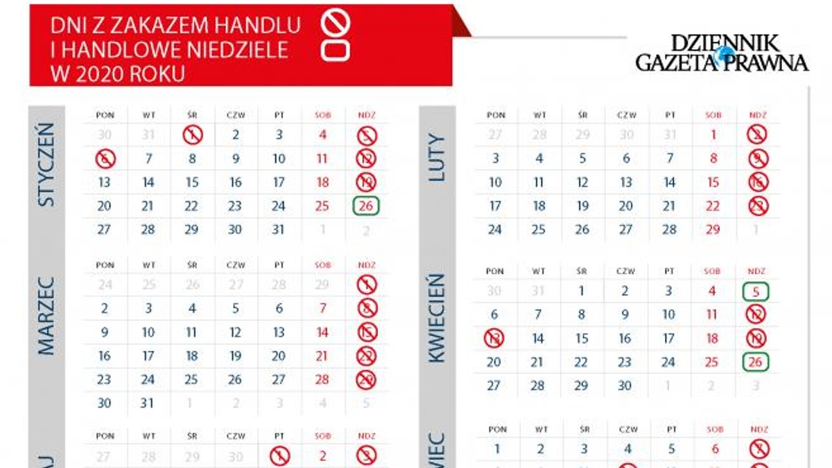 Spośród wszystkich 52 niedziel w tym roku, handel będzie dozwolony jedynie w kilku przypadkach.